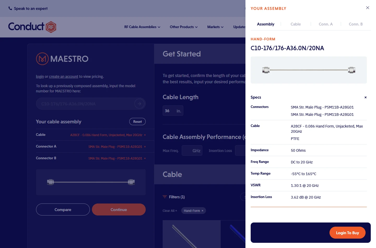 Provide MAESTRO with the length of the cable assembly you’re composing and performance specs, if any.
