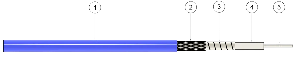 (2) Braid and/or (3) foil layers for EMI protection and signal containment