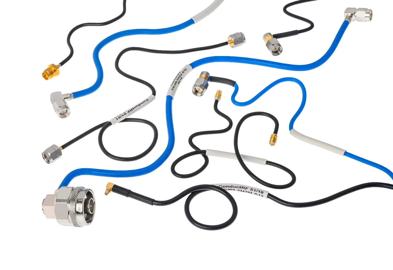 ConductRF’s semi-flexible RF cable assemblies are engineered to provide an ideal balance between flexibility and signal performance. Unlike standard flexible cables, which bend freely but have performance limits, or hand formable cables that use tin-soaked outer shields to hold their shape and  designed to retain mild shape after routing—thanks to a semi-rigid-style shielding layer beneath a flexible outer jacket.